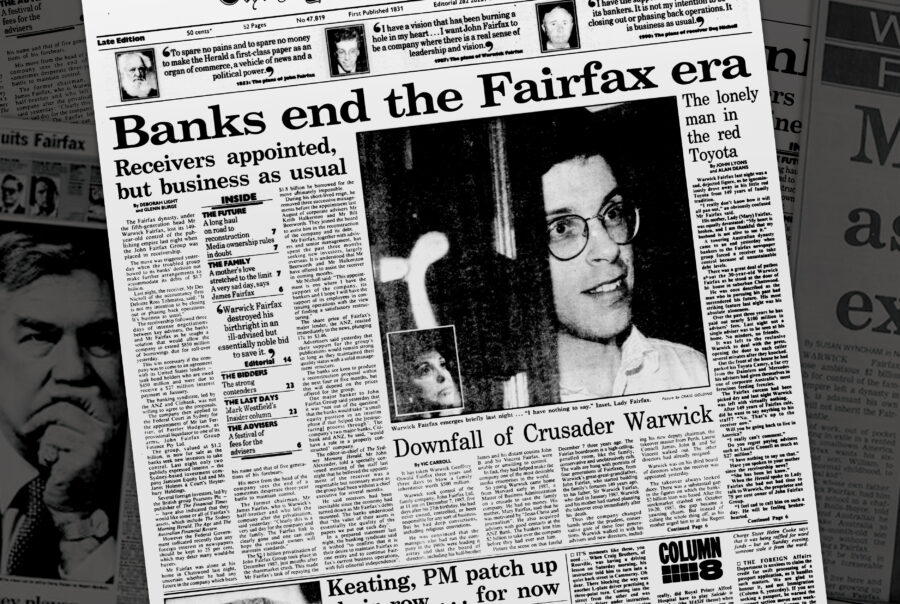 I launched the AUS $2.25B takeover in August 1987 of John Fairfax Ltd., a large diversified media company that, at its height, included newspapers, television stations, radio stations, magazines, and newsprint mills. With The Sydney Morning Herald, The Age in Melbourne, and The Australian Financial Review, it had the equivalent of The New York Times, The Washington Post, and The Wall Street Journal of Australia.